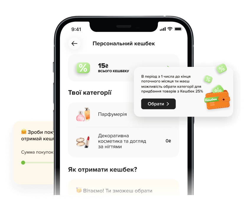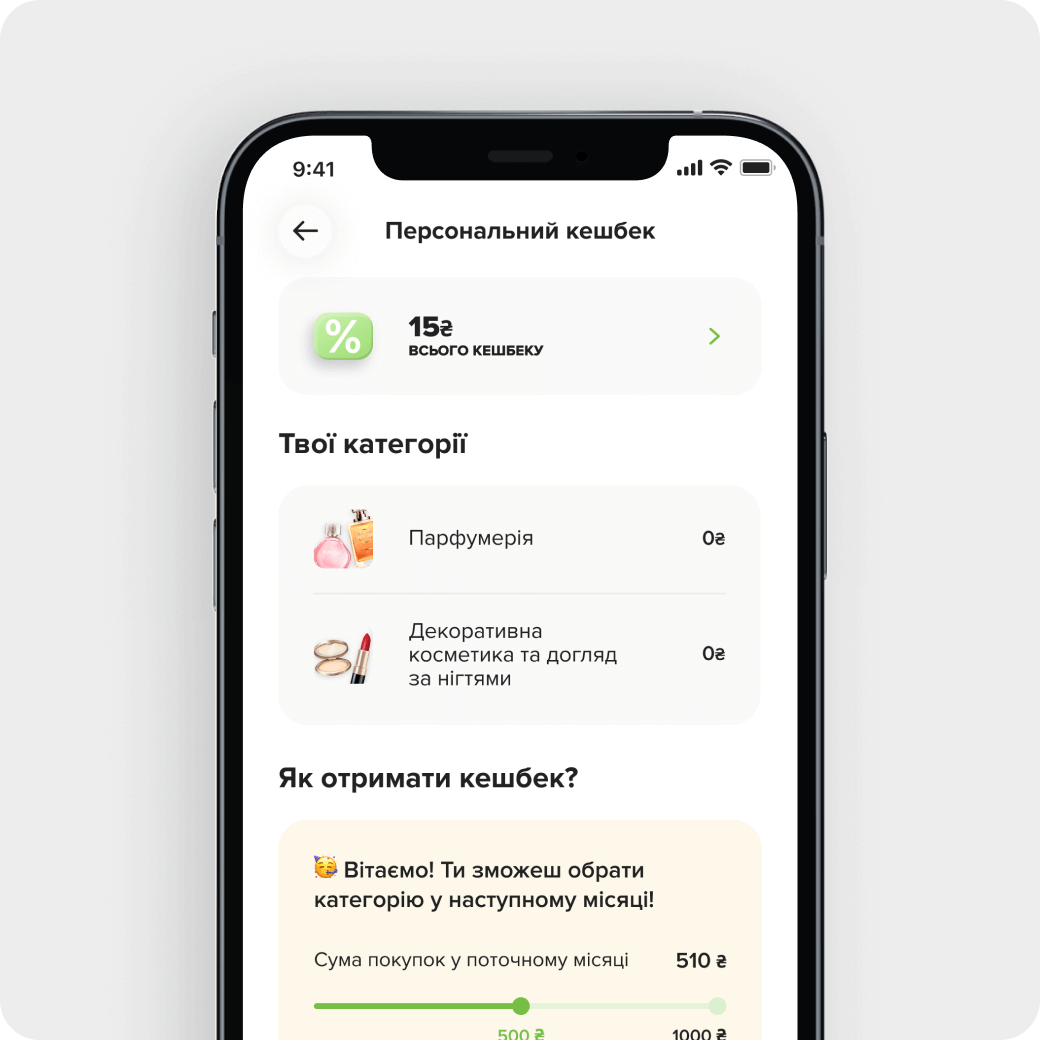 Накопичуй, відслідковуй та витрачай кешбек за свої покупки кожного місяця.