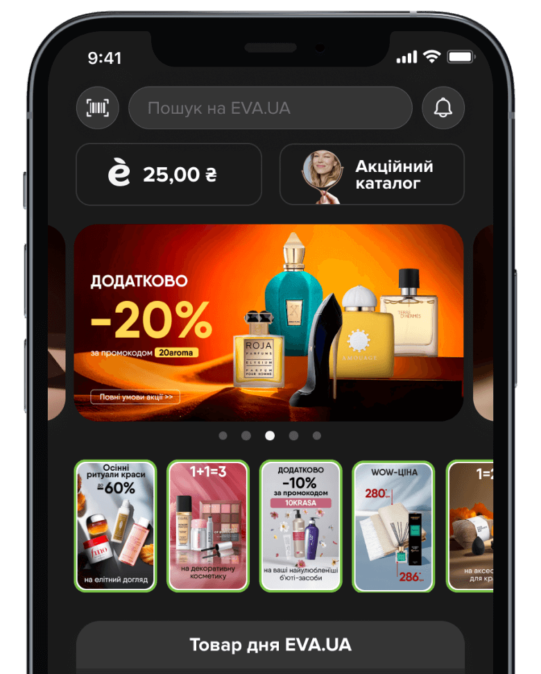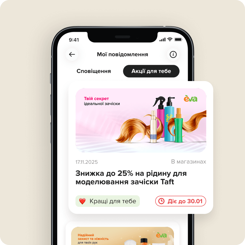 Купуй з карткою EVA МОЗАЇКА та отримуй персональні промо у своєму застосунку