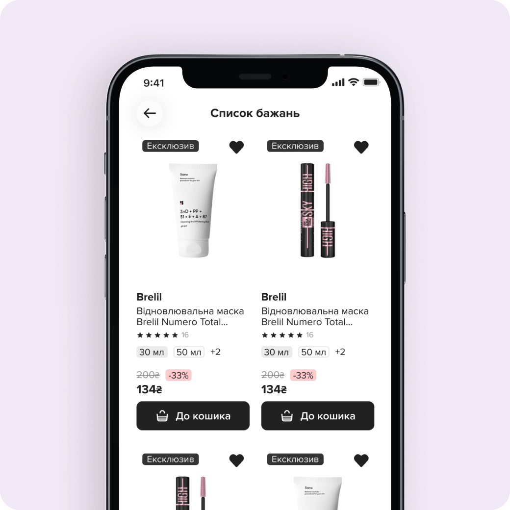 Створюй список товарів-бажанок і швидко переглядай його на головній сторінці застосунку.